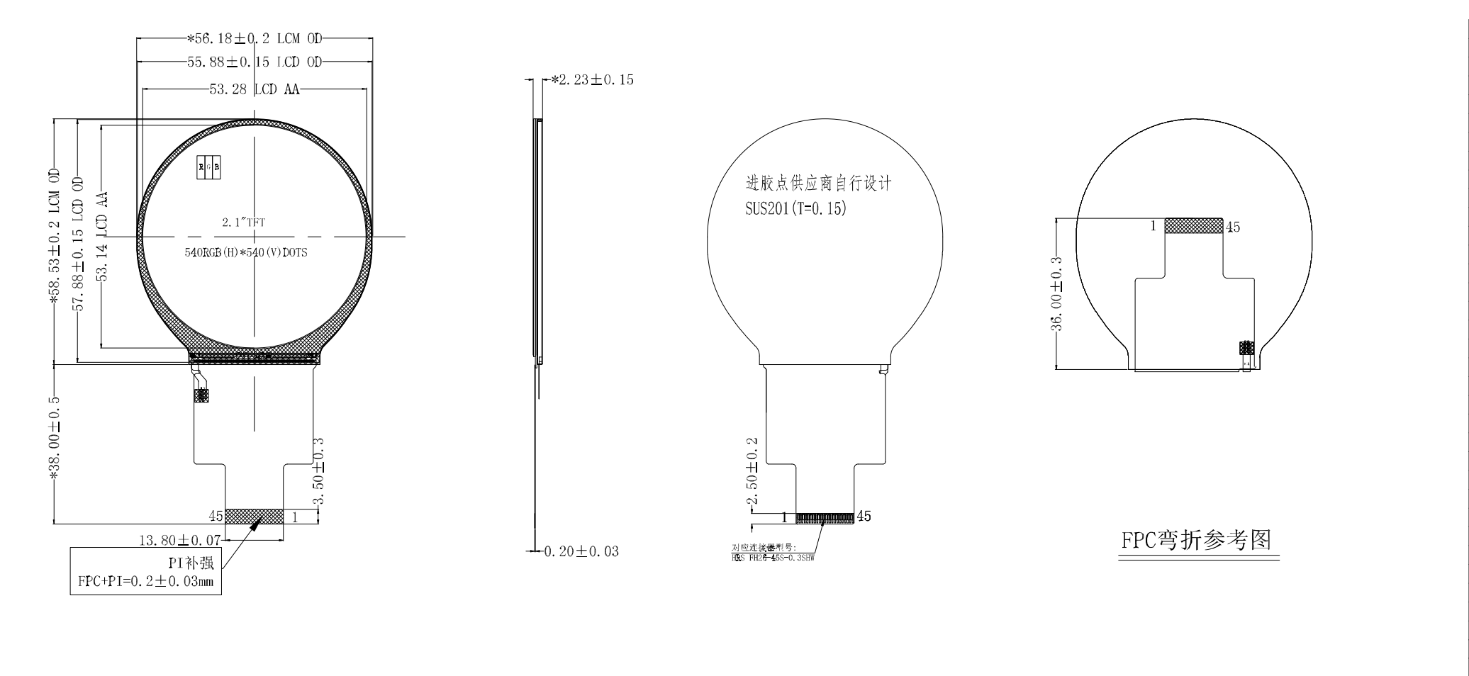 2.1寸圆形液晶屏incell分辨率540*540接口 QSPI/SPI/MCU带多点触摸